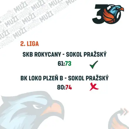 Rokycany: Zápas, ve kterém jsme v prvním poločase byli největším soupeřem my sami sobě, vzhledem k velmi nízké úspěšnosti střelby ze všech pozic, jsme rozhodli ve 3. čtvrtině. V té jsme si zlepšeným výkonem vytvořili pohodlný 20 bodový náskok a v klidu jsme si dokráčeli pro třetí výhru v sezóně.